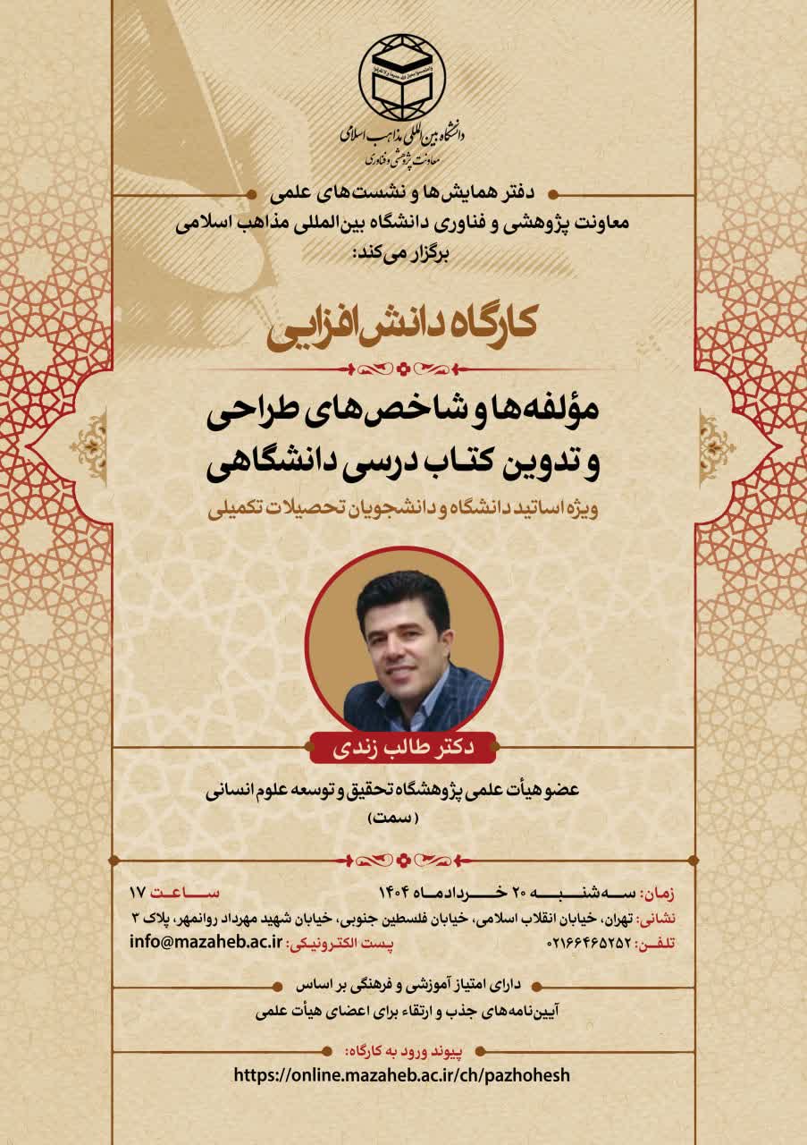 مدرس: دکتر طالب زندی عضو هیأت علمی پژوهشگاه تحقیق و توسعه علوم انسانی( سمت)
