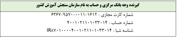 مبلغ 3،600،000 ریال بابت هزینه مصاحبه برای هر کد رشته محل که به حساب زیر پرداخت شود. توجه مهم: وجه پرداختشده ثبتنام، در صورت انصراف و یا عدم پذیرش نهایی متقاضی یا اشتباه در پرداخت به هیچ عنوان مسترد نخواهد شد. لذا داوطلبان محترم ضروری است قبل از واریز هزینه دقت لازم را به عمل آورند.